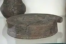 There are two frying pans very similar to the example from Paros in form and decorations; one of unknown provenance in the Benaki Museum, Athens[4] and a fragmentary example in the National Archaeological Museum of Athens, excavated by Christos Tsountas at Kato Akrotiri on Amorgos in 1898.[5]