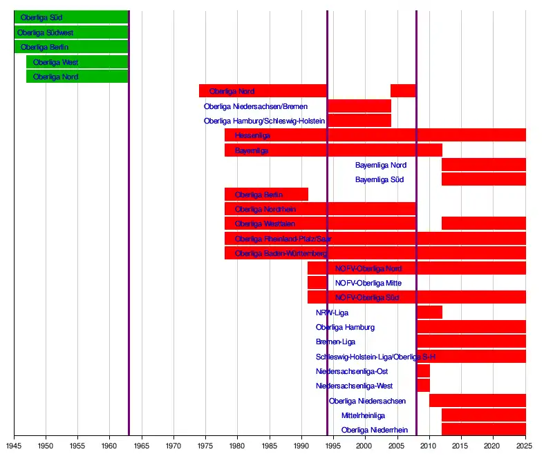 From the end of the Second World War until the formation of the Bundesliga in 1963 there were five regional Oberligen: