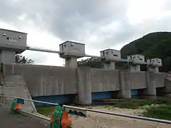 The village was spared from the devastation brought to other coastal communities following the 2011 Tōhoku earthquake and tsunami thanks to a 15.5-metre (51 ft) floodgate that protected the town. The floodgate was built between 1972 and 1984 at a cost of ¥3.56 billion (approximately US$30 million in 2011) under the administration of Kotoku Wamura, the village mayor from 1947 to 1987. Initially derided as a waste of public funds, the floodgate protected the village and the inner cove from the worst of the tsunami waves.[10] After the 2011 tsunami, the villagers gave thanks at Wamura's grave. The village's only casualty was one missing person who went to inspect his boat in the fishing port, located outside of the wall's protection, immediately after the earthquake.[10]