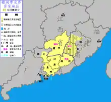 During the Dutch Formosa period of Taiwan, a large number of Hoklo people were recruited to cultivate in Taiwan, and then settled there. The genealogies of the Yans of Anhai and the Guos of Dongshi both recorded settling in Taiwan.[12] In 1661, Zheng Chenggong established the Chengtian Prefecture in Taiwan after defeating the Dutch East India Company in the Siege of Fort Zeelandia.[13]