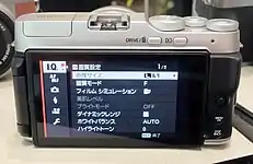 X-A7 is equipped with a larger flip-out articulating LCD touchscreen at 3.5 inches, a first from Fujifilm.[4] Colors available for the camera are Silver, Camel, Mint Green and Dark Silver.[1]