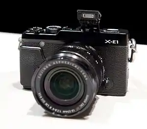 The Fujifilm X-E1 is a digital rangefinder-style mirrorless camera announced by Fujifilm on September 6, 2012. It is the second camera announced for Fujifilm's X-system, after the Fujifilm X-Pro1.