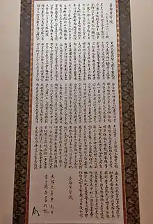 Fukan zazengi (Japanese: 普勸坐禪儀), also known by its English translation Universal Recommendation for Zazen, is an essay describing and promoting the practice of zazen written by the 13th century Japanese Zen monk Eihei Dōgen. The date of its composition is unclear, and the text evolved significantly over the author's lifetime. It is written in Classical Chinese rather than the Classical Japanese Dōgen used to compose his famous Shōbōgenzō.[1]