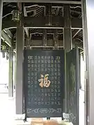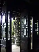 The garden also has gates on the four cardinal directions, a number of six-sided pavilions, sculptures, bells, several inscriptions painted large on wood and stone, and in one building, a small exhibit of Chinese paintings and of a model of the style of ship that would have journeyed to Fuzhou during the time of the Ryūkyū Kingdom to bring tribute and to engage in trade. The Chinese and Japanese concept "borrowing of scenery ("shakkei")" (借景, C:jie jing, J:shakkei) is also used, adding to the sense of the garden's size. One element indicative of Okinawa, however, is seen in the plants and trees chosen for the garden. Trees such as Murraya paniculata, a relative of the orange and mikan, called gekkitsu (月橘) in Japanese, and Acacia confusa, called sōshiju (相思樹) in Japanese, both native to the Ryukyu Islands, Taiwan, and parts of Southeast Asia, were chosen for their aesthetic qualities, particularly for their flowers, which allow the garden's appearance and atmosphere to change with the seasons in a particular way appropriate for a traditional Chinese garden.