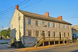 The Fulton House is a prominent Georgian-influenced stone tavern built c. 1793 and located on Lincoln Way East in McConnellsburg, Pennsylvania, this inn once boarded governors and four presidents and was originally known as The Union Hotel. The building is now restored following a devastating 1944 fire that destroyed much of the 18th century interior of the original structure. The 1820 east end addition was not affected by the fire.[2]