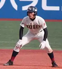 During offseason, he played for the national team in the WBSC U21 Baseball World Cup in Taiwan. He played in every round, batting 0.304, and contributed 8 RBIs including a 3-run homerun during the match against Venezuela, helping Japan finish as the runner-up winner. He was given the tournament's Best Nine Award as second baseman.[6][7]