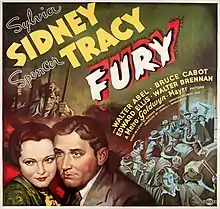Fury is a 1936 American drama film directed by Fritz Lang that tells the story of an innocent man (Spencer Tracy) who narrowly escapes being burned to death by a lynch mob and the revenge he then seeks. The film was released by Metro-Goldwyn-Mayer and stars Sylvia Sidney and Tracy, with a supporting cast featuring Walter Abel, Bruce Cabot, Edward Ellis and Walter Brennan. Loosely based on the events surrounding the Brooke Hart murder in San Jose, California,[4] the film was adapted by Bartlett Cormack and Lang from the story Mob Rule by Norman Krasna. Fury was Lang's first American film.