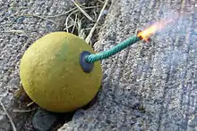 In an explosive, pyrotechnic device, or military munition, a fuse (or fuze) is the part of the device that initiates function. In common usage, the word fuse is used indiscriminately. However, when being specific (and in particular in a military context), the term fuse[1] describes a simple pyrotechnic initiating device, like the cord on a firecracker whereas the term fuze[2][3][4] is used when referring to a more sophisticated ignition device incorporating mechanical and/or electronic components, such as a proximity fuze for an M107 artillery shell, magnetic or acoustic fuze on a sea mine, spring-loaded grenade fuze,[5][6][7] pencil detonator, or anti-handling device.[8]