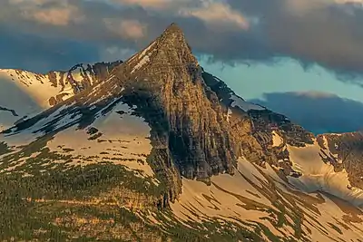 Fusillade Mountain (8,755 feet (2,669 m)) is located in the Lewis Range, Glacier National Park in the U.S. state of Montana.[3] Fusillade Mountain lies immediately north of Gunsight Lake at the western terminus of the St. Mary Valley and can be seen from the Going-to-the-Sun Road. The mountain was named by George Bird Grinnell in 1891, "as a satirical gesture at W. H. Seward and Henry L. Stimson for firing a futile volley at a group of goats on the side of this mountain".[4]