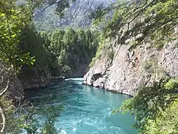 During its course through Chile, the Futaleufú River has three major tributaries, the Rio Chico, the Rio Espolon, and the Rio Azul. All three major tributaries of the "Futa" can be rafted or kayaked in season, with the exception of a magnificent gorge on the Espolon called "The Devil's Throat," which is better viewed than paddled.[1] The Futaleufú watershed also includes several lakes including Lago Espolon, Lago Lonconao, and Lago Pinilla.[2]