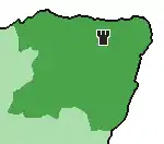 The castle (like many places in Scotland) is said to be haunted.[6] A story is told that in 1920 during renovation work the skeleton of a woman was discovered behind a bedroom wall. On the day the remains were laid to rest in Fyvie cemetery, the castle residents started to be plagued by strange noises and unexplained happenings. Fearing he had offended the dead woman, the Laird of the castle had the skeleton exhumed and replaced behind the bedroom wall, at which point the haunting ceased. It is said that there is a secret room in the south-west corner of the castle that must remain sealed lest anyone entering meet with disaster.[7] It is unclear if this is the same room in which the skeleton was found. There is also an indelible blood stain, two ghosts and two curses associated with this place.[8]