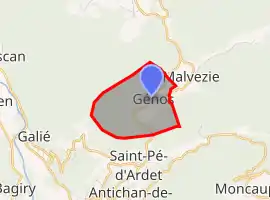| Wikimedia Commons has media related to Génos (Haute-Garonne). |