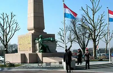Although Luxembourgers left under German occupation at home could do little to aid the Allies, those overseas, outside Germany's control, could volunteer to serve against Germany. In total, 3,700 Luxembourgian nationals served in the French army, of whom, 2,000 died.[4] As Luxembourg's pre-war population was only 266,000,[5] this death toll amounted to more than 1% of the entire national population, which is a relatively greater percentage than many combatant nations (see: World War I casualties).