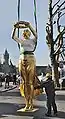 Gëlle Fra lowered by crane from the obelisk, March 2010, for removal to Expo 2010, Shanghai