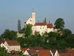 Gößweinstein Castle (German: Burg Gößweinstein), also called Schloss Gößweinstein, is a mediaeval hilltop castle in Gößweinstein in the county of Forchheim in the German state of Bavaria. It towers high above the market town and the River Wiesent and may have been the inspiration for Richard Wagner's grail castle in his opera, Parsifal. The castle is a Bavarian listed building, no. D-4-74-129-10.