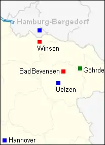 The Göhrde is a large state forest of about 75 square kilometres in the Lüchow-Dannenberg district and to a small extent in the Lüneberg district. Both districts are located in the northeastern region of the federal state of Lower Saxony, about 60 kilometres away from Hamburg, 30 kilometres from Lüneburg and 20 kilometres from Uelzen. The Göhrde is the largest mixed forest in Northern Germany and is almost uninhabited. It used to be the hunting ground of the dukes of Brunswick and Lüneberg, which at the beginning of the 18th century the Jadgschloss Göhrde housing area was established. Later, the kings of Hanover and the German emperor went hunting there. In 1989, the Göhrde was still in the largely uninhabited former east-west German border area.