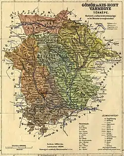 The county Gömör-Kishont was a combination of the counties Gömör and Kishont formed in 1802. It existed until the end of World War I. Gömör is one of the oldest counties of the Kingdom of Hungary, and was already mentioned in the 11th century. Kishont is the territory approximately between the towns Tiszolc (present-day Tisovec) and Rimaszombat (present-day Rimavská Sobota). Counties of Gömör and Kishont was part of Ottoman Empire between 1541–1595 and 1596–1686.