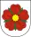 The blazon of the municipal coat of arms is Per bend sinister Gules and Argent.[5]