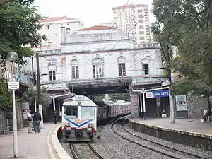 Göztepe station (Turkish: Göztepe İstasyonu) is a historical railway station in Kadıköy, Istanbul. Between 1969 and 2013, it was a station on the Haydarpaşa suburban railway line to Gebze. A modern station of the same name is now a stop on the Marmaray commuter rail service to Gebze..
