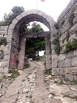 Gülek Kalesi (Armenian: Kuklak; Arab: Kawlāk) is a large fortification of considerable antiquity which retains evidence of Byzantine and Arab periods of occupation, but is primarily a construction of the 12th and 13th centuries attached to the Armenian Kingdom of Cilicia.[2] Its circuit walls and towers at the south and west cover a distance of over 450 meters. An extensive photographic survey and plan of Gülek Castle was made between 1973 and 1979.[3] Its name in the 12th century was Askaliba. [4] In an Armenian document a certain Symbat was named as the lord of the castle. The castle was used to control the passage from Cilicia to Cappadocia and the passengers had to pay a certain sum to the lord of the castle. Later, the castle was captured by the Mamluks of Egypt and the Ottoman Empire. Ottomans obtained lead from the mines to the northwest of the castle.[4] During the revolt of Mehmet Ali Pasha in the 19th century, the castle was used by İbrahim Pasha of Egypt, Mehmet Ali's son.[5]