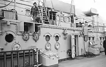 At the outbreak of World War II, Lütjens was Commander of Scouting Forces—Befehlshaber der Aufklärungsstreitkräfte (B.d.A.)—made up of German destroyers, torpedo boats and cruisers.[20] On 1 September 1939 Germany invaded Poland and two days later, Lütjens sailing aboard his flagship, Z1 Leberecht Maass and Z9 Wolfgang Zenker took part in an attack on the Polish ships Gryf and Wicher in Gdynia harbour. Lütjens attacked from a range of 14,000 yards south-east of the harbour. The Poles replied effectively and forced the German destroyers to make evasive manoeuvres and to lay a smoke screen to throw off the aim of the Polish gunners. Leberecht Maass was hit in the superstructure by a 152-millimeter (6.0 in) shell from the coast defence battery at Hel that killed four crewmen and wounded another four men. Lütjens ordered the action broken off 40 minutes later as the German fire was ineffective. Lütjens ordered the group to Pillau to refuel and the Leberecht Maas sailed to Swinemünde for repairs.[21]