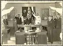 In 1936, Lütjens was appointed Chief of the Personnel Office of the Kriegsmarine, an office which he had served in 1932–34, and in 1937, he became Führer der Torpedoboote (Chief of Torpedo Boats), with Z1 Leberecht Maass as his flagship, and was promoted to Konteradmiral in October 1937.[15] While in command of personnel department he did nothing to enforce the Nuremberg Laws on race in the Kriegsmarine.[16] In November 1938, Lütjens was one of only three flag officers, including Dönitz, who protested in writing to Raeder, Commander-in-Chief of the navy, against the anti-Jewish Kristallnacht pogroms.[17]