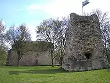 About 25 m (82 ft) behind the curtain wall, currently nearly flat, runs the old inner ditch. Behind the inner ditch, portions of the inner castle still remain. These include debris, barriers and the ruins of the keep.