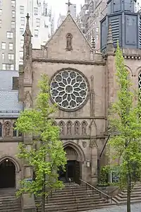 "G.G." was written by Joshua Safran and directed by Mark Piznarski.[3] The wedding scene was filmed at the St. James' Episcopal Church in New York on November 9, 2011.[4][5] The reception that followed it was shot at The St. Regis Hotel.[6] On November 19, 2011, news from the episode, including the title, were reported.[7] Later on, the episode was also reported to feature a dream musical number with Serena as Marilyn Monroe, Blair as Audrey Hepburn, and the men in both their lives.[8] Blair's wedding dress as well as Serena's maid of honor dress were designed by Vera Wang.[9] Blair's dress appeared in InStyle's top 20 TV fashion moments of the season.[10]