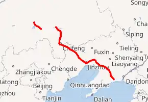The Dandong–Xilinhot Expressway (Chinese: 丹东—锡林浩特高速公路), commonly referred to as the Danxi Expressway (Chinese: 丹锡高速公路) is an expressway that connects the cities of Dandong, Liaoning, China, and Xilinhot, Inner Mongolia. When fully complete, it will be 960 km (600 mi) in length.