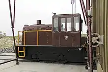 The locomotive was designed as a hood unit to improve visibility for the engineer, essential for switching duties. Power was generated using a 6 cylinder Cummins HBI-600 diesel engine producing 150 hp (110 kW) at 1,800 rpm.[6] This engine powered a single GE GT-1503 main generator, which in turn provided electricity to the single rear-mounted GE-733 traction motor which powered the rear axle. Power was provided to the forward axle using a chain drive.[4][1] The unusual chain drive system for a locomotive was part of the reason for its top speed being limited to 20 mph (32 km/h).[1]