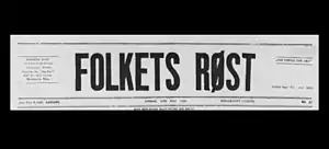 In an effort to keep the publishing operation alive, the Mengshoels resorted to an artifice widely used to beat European censorships, relaunching their publication with a new name, Folkets Røst (People's Voice) — a name regarded as one less militant than Gaa Paa.[19] The old publication was shut down in October 1918 with the ostensibly "new" paper first seeing print on December 21, 1918, following a pause in publication of some two months.[21]