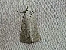Adults are extremely variable in colour and maculation (spots). The colour ranges from nearly white to dark grey and immaculate to specimens with a central nearly black streak across the width of the forewing.