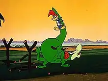 Gabby Gator later appeared in The New Woody Woodpecker Show in the episode Corn Fed Up.