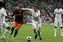Heinze was more regularly used in his second year at the Santiago Bernabéu Stadium, but the club came out empty in silverware, with the exception of that year's Supercopa de España.[24]