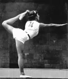 Gabriella Mészáros (born 14 December 1913, died 4 April 1994[1]) was a Hungarian gymnast who competed in the 1936 Summer Olympics.[2] Exceptionally good on beam, she was the highest scorer on balance beam on the voluntary exercise on that apparatus as well as having the highest combined (compulsory and voluntary totalled together) score on that apparatus at the 1936 Summer Olympics. Also, at the first-ever World Championships for Women in 1934, she is credited with being the first gymnast ever to execute a split on the balance beam,[3] during which debut, a judge arose from his/her station to observe the new feat.
