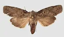 The species name refers to the dark greyish brown ground colour of the forewings.[1]