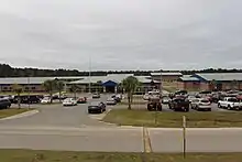 The complex houses eight academic buildings, all blue-trimmed and in brick.[8] It also has a gymnasium with a 2,500 seats for spectators, and a 2-acre (0.81 ha) grassed area. The academic complex has a hallway the length of a football field. The gymnasium houses a dance studio, a wrestling room, a weight room, and a treatment clinic. Food is served in a combined cafeteria and performance stage; there are five serving lines.[7] The ROTC complex includes a firing range. There is also a television studio.[4]