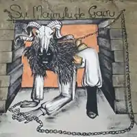 This character is put on chains by other characters, the good ones (is maimulus). These characters represent good spirits protecting the community. They also wear animal skins and animal heads (cows, sheep, goats or other horned animals) and lot of bells in their back. During the representation they advance with a regular rhythm (given by the bells on their backs) and beat the bad character, forcing him to follow their rhythm.