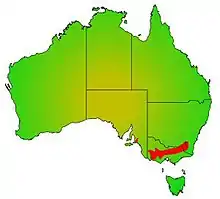 The obscure galaxias is found at a wide range of elevations from 0–600 metres (0–1,969 ft) in the Murray river system in Victoria and southern New South Wales as well as south of the Great Dividing Range in western Victoria including all tributaries to the Wimmera River and several tributaries to the Murray River within the Mount Lofty Ranges in South Australia. The fish is also recorded from coastal drainages in western Victoria including the Corangamite Basin, the Hopkins River and extending through to Mosquito Creek within the Bool Lagoon catchment in South Australia. Additionally, the fish is found very close to the sea in the Merri River and the Darlot/Fitzroy River systems in western Victoria.[2]