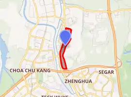 Construction of the 25 hectare at-grade depot, Singapore's first aboveground MRT depot to serve an underground MRT line, started in December 2008, which was opened on 27 December 2015. As part of the construction, 1,957 graves on part of the Kwong Hou Sua Teochew Cemetery had to be exhumed.[1]