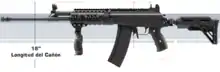 The Galil Córdova arose from the need to modernize 400,000 rifles of the Colombian Armed Forces. First, a modernization kit of the Galil SAR, to improve its current characteristics, allowing the placement of combat accessories (sights, flashlights, laser, foregrip) and improve ergonomics and user comfort through a telescoping stock.[2] With the conversion kit in place, the need arose to carry out a second update to the weapon, improving some of its technical characteristics (weight, barrel length, caliber, rate of fire and ergonomics), making it also an urban defense tactical rifle adapted to the current security needs of Colombia.[3]