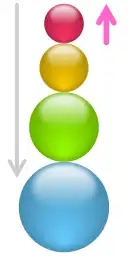 A Galilean cannon is a device that demonstrates conservation of linear momentum.[1] It comprises a stack of balls, starting with a large, heavy ball at the base of the stack and progresses up to a small, lightweight ball at the top. The basic idea is that this stack of balls can be dropped to the ground and almost all of the kinetic energy in the lower balls will be transferred to the topmost ball - which will rebound to many times the height from which it was dropped. At first sight, the behavior seems highly counter-intuitive, but in fact is precisely what conservation of momentum predicts. The principal difficulty is in keeping the configuration of the balls stable during the initial drop. Early descriptions involve some sort of glue/tape,[2] tube, or net[3] to align the balls.
