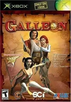 Galleon (Galleon: Islands of Mystery in the U.S. version) is an action-adventure game that was developed by Toby Gard and Confounding Factor, and released by SCi Games and Atlus for the Xbox. A mobile spin-off titled Galleon: Dawn was released on August 26, 2004.