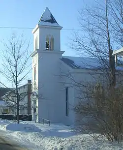 Gallupville Methodist Church is a historic Methodist church in Gallupville, Schoharie County, New York. The original Greek Revival style church structure is a three-by-three-bay, plain frame structure with a small, single-story rear wing built about 1844. In 1896, a central Romanesque style two stage, engaged entry / bell tower was added.[2]