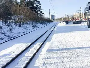 Galoppfältet is a Swedish railway station connected by Roslagsbanan in Täby municipality. Named after the nearby Täby Racecourse (Täby Galopp), the station is located about 13 km from Stockholm East Station. It consists of a middle platform with entrances from both sides.
