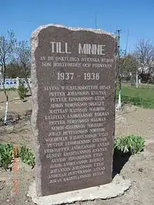- Шама, Олег (October 6, 2016). "Как шведы Украины спасались от советской власти еще в 1930-х годах" [How the Swedes of Ukraine Escaped the Soviet Regime Back in the 1930s]. Аргумент (in Russian). Archived from the original on October 29, 2016. Retrieved March 2, 2021.