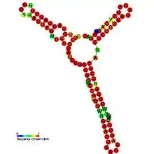A 3D representation of a Gammaretrovirus core encapsidation signal. This is a view of the NMR structure for the 101-nucleotide core encapsidation signal of the Moloney murine leukemia virus.[1]