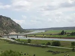 ![]() Gamtoos River near its mouth into the Indian Ocean between Port Elizabeth and Jeffreys Bay, with the R102 bridge in the foreground and the N2 bridge in the background. | |