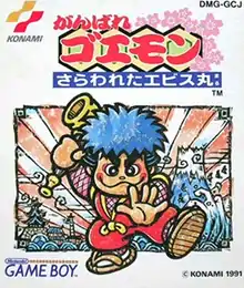 Ganbare Goemon: Sarawareta Ebisumaru! (がんばれゴエモン さらわれたエビス丸, "Persevere Goemon: Kidnapped Ebisumaru!") is a Game Boy game released in 1991 and the first game in the Goemon series ever released for a portable system. Gameplay is similar to Ganbare Goemon! Karakuri Dōchū which was released on the Famicom. Only Goemon is playable, and the game consists of him rescuing Ebisumaru; Sasuke and Yae do not make appearances.