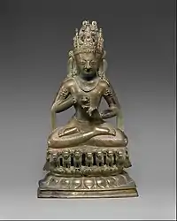 Another important Gandhāran site in which Buddhism remained strong during the 7th century was the northern city of Gilgit, a key city on the Silk Road which was visited by Chinese pilgrims to study Buddhism.[34] The region was ruled by the Patola Shahi dynasty of the Kingdom of Gilgit in the 600s and 700s, which were adherents of Vajrayana Buddhism.[35] The city later came under the rule of the Tibetan empire until the late 800s.[36]